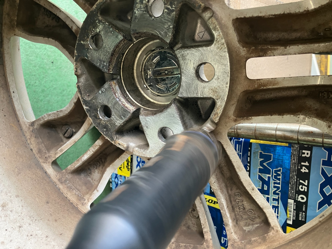 車両側のハブ取り付け面をしっかり清掃させていただき、