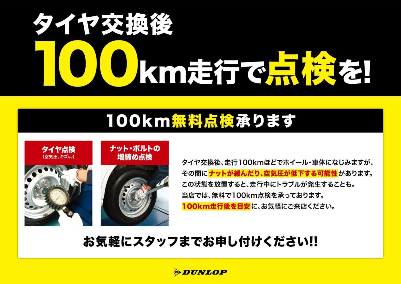 本日はタイヤ交換後の『100Km点検』をご案内。