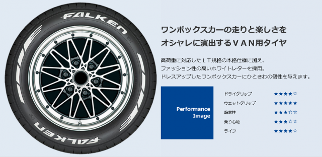 今回はファルケンから発売されたバン用ホワイトレタータイヤ「W11」のご紹介