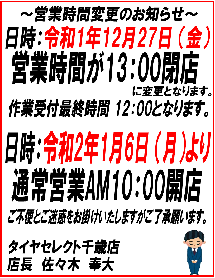 来年もタイヤセレクト千歳を何卒よろしくお願い致しますm(__)m
