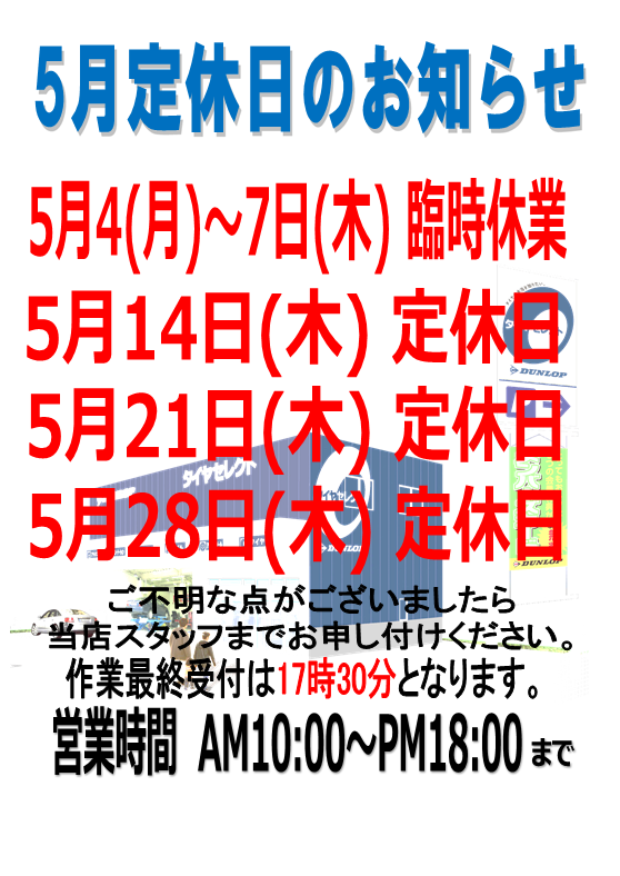 また5/4(月)~5/7(木)は臨時休業とさせていただきますのでご了承お願い致しますm(__)m