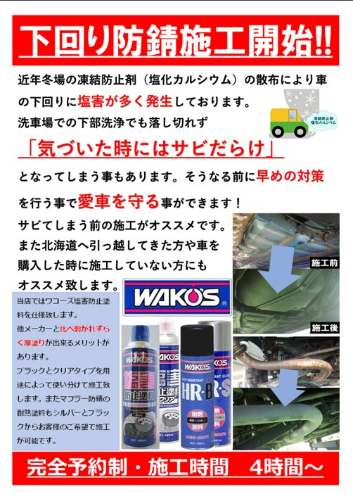 当店では厚塗りができ、剥がれにくいワコーズの防錆塗料を使用した下塗りを受け付けております