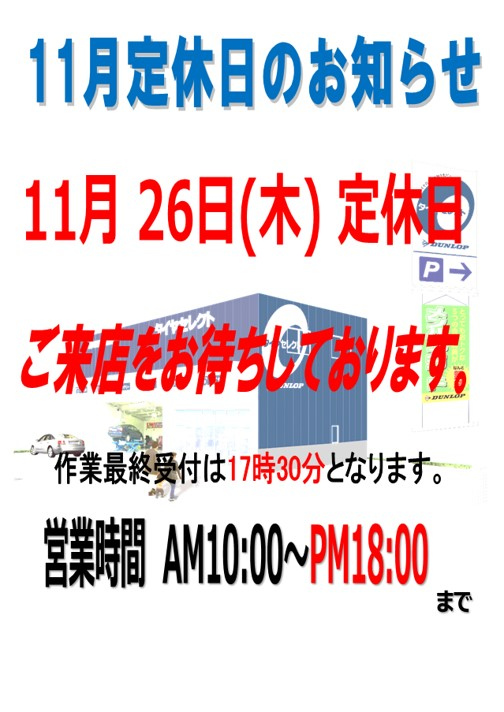 11月の定休日案内です!