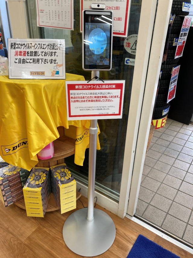ご来店の際、店内入り口に検温器を設置しておりますので、