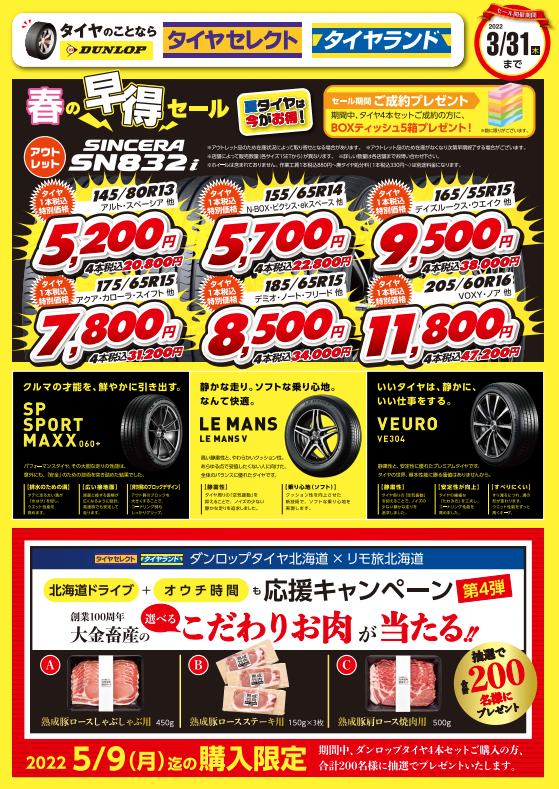 セール期間中に、タイヤ4本セットご成約の方に!