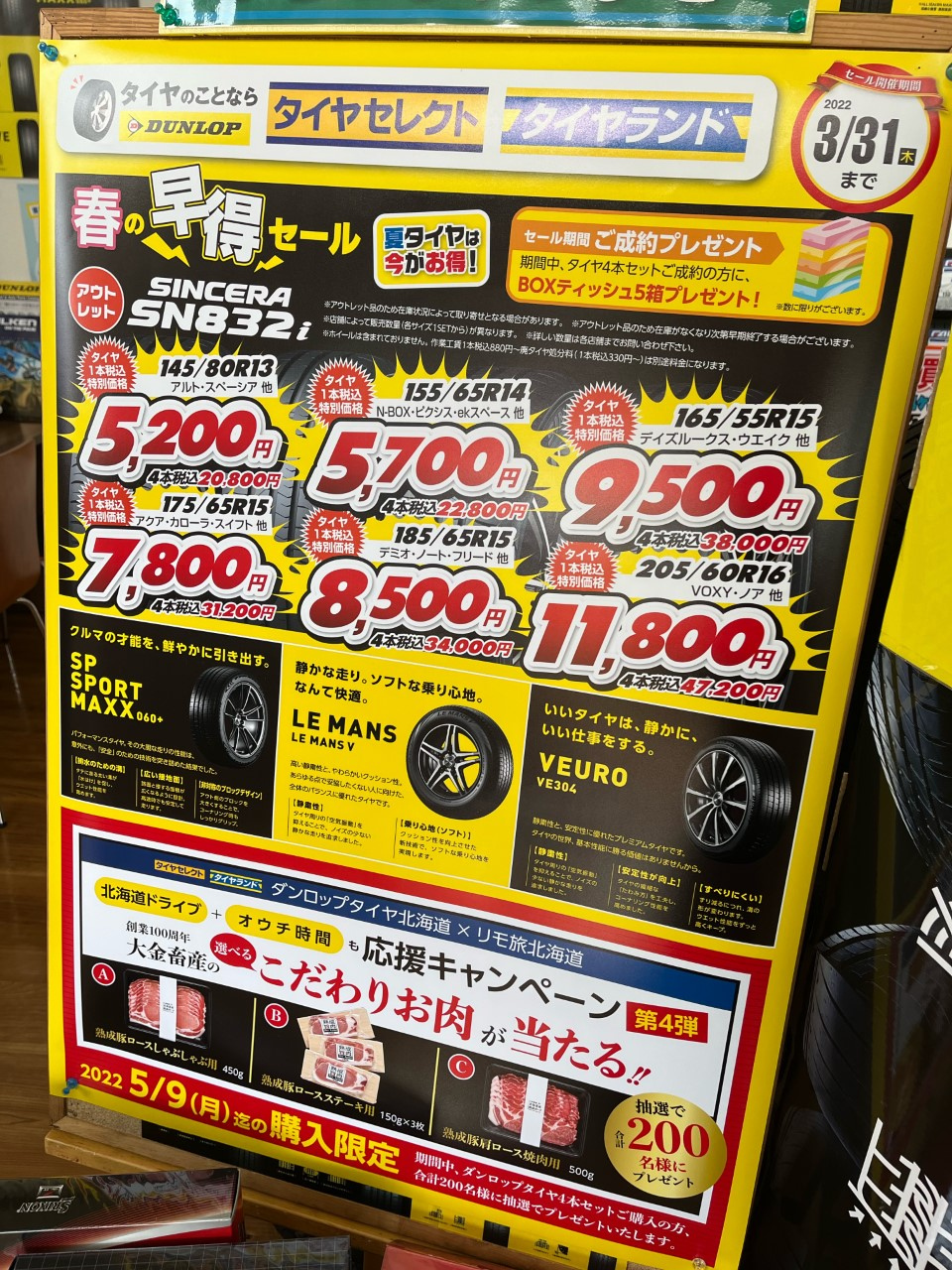 セール期間中に、タイヤ4本セットご成約の方に!