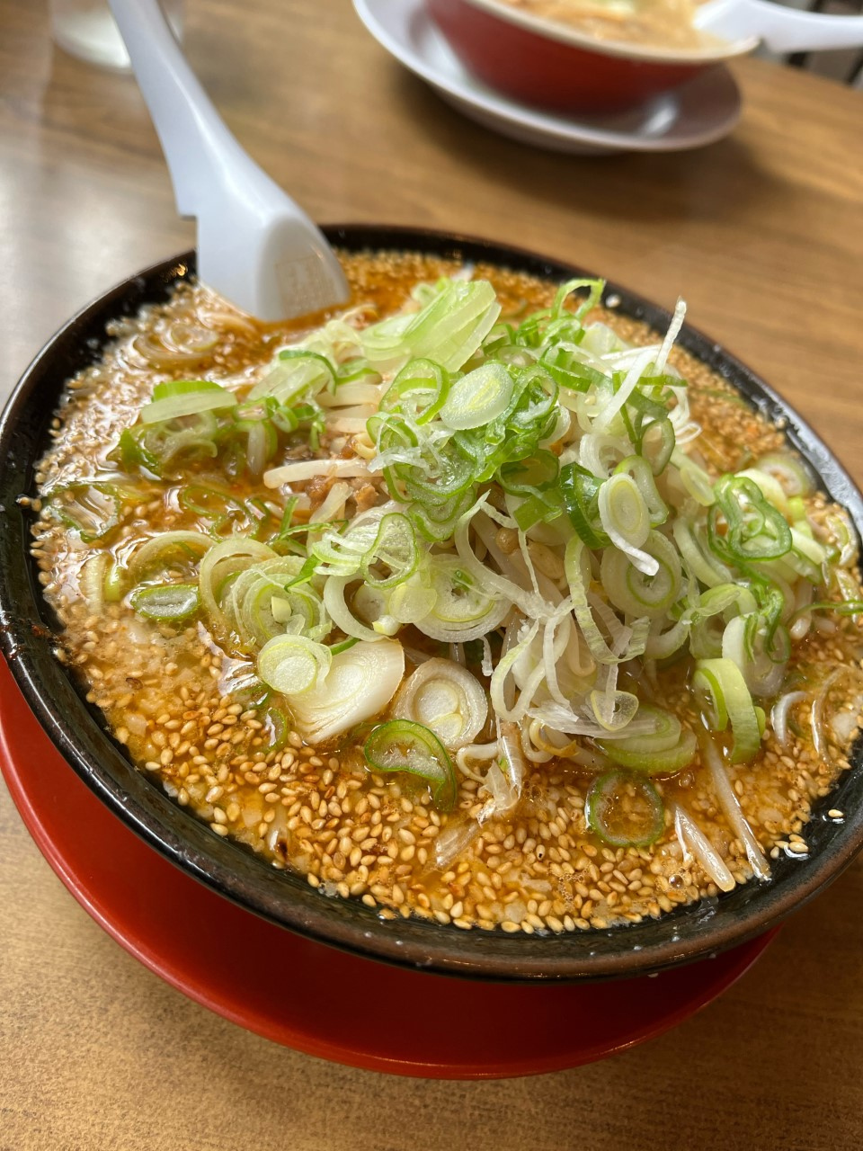 味噌ラーメンなんですが、ネギ多めで旨し ♬