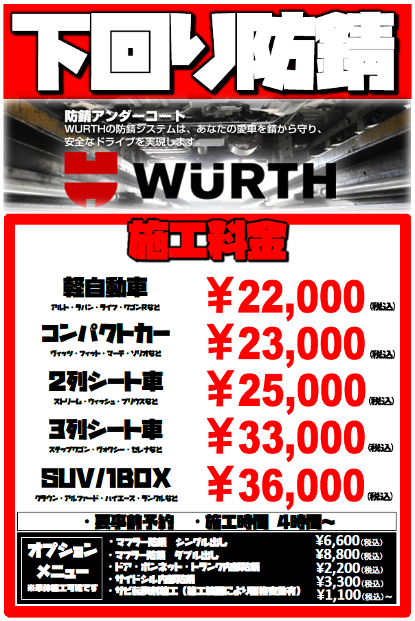 ようやく下回り防錆『ウルト』の展示が完了致しました♪