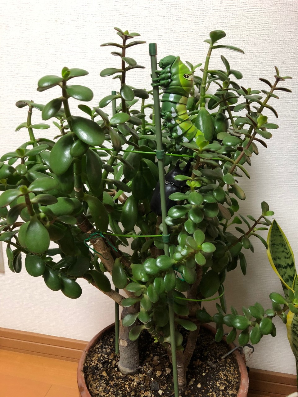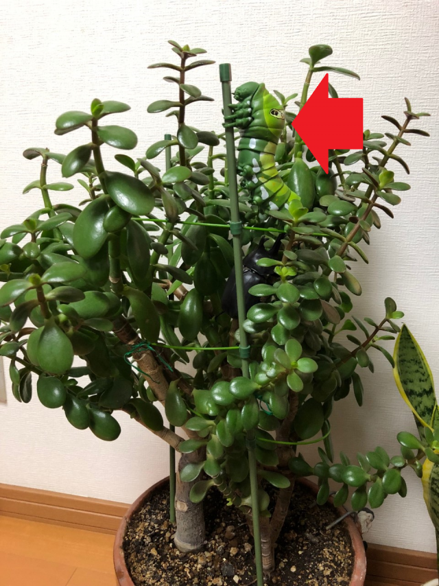 下の観葉植物の中に、