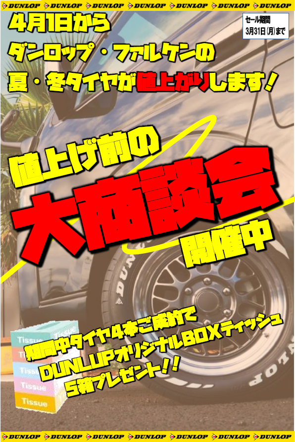 夏タイヤはもちろん、冬タイヤもお買い得なこのチャンスに、