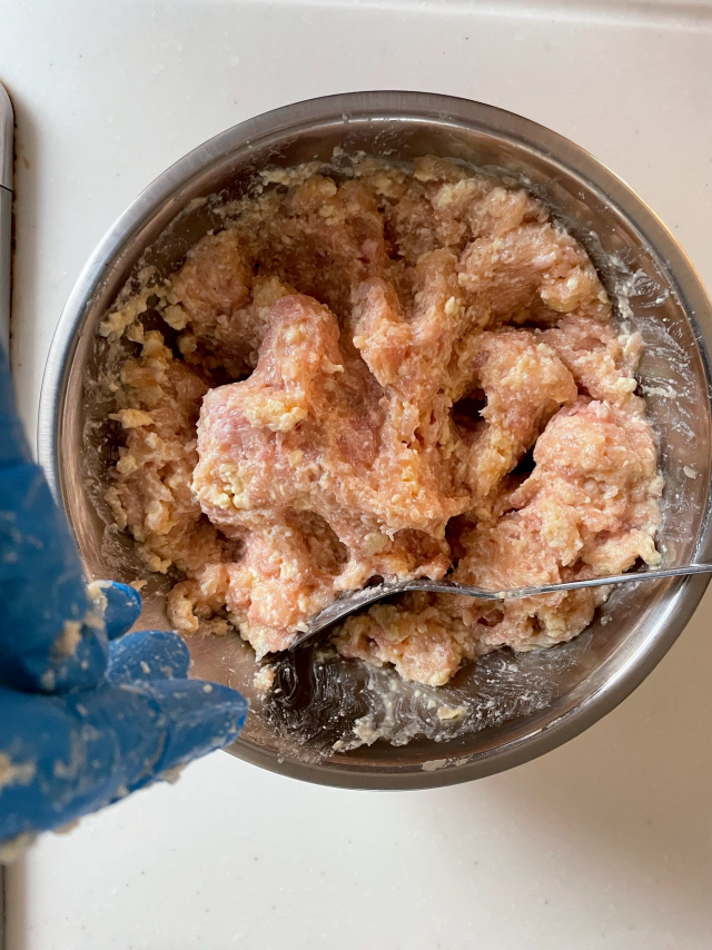 材料をボールにいれてコネコネ。。。