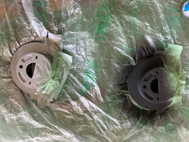 マフラー塗装(ブラックとシルバー)の塗装見本を作成していますので