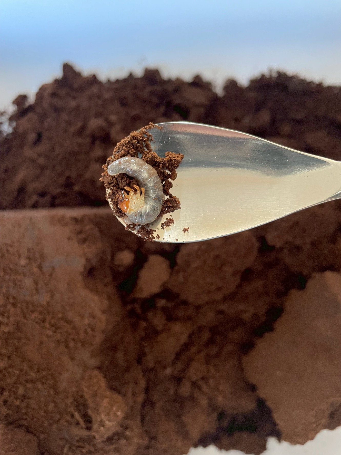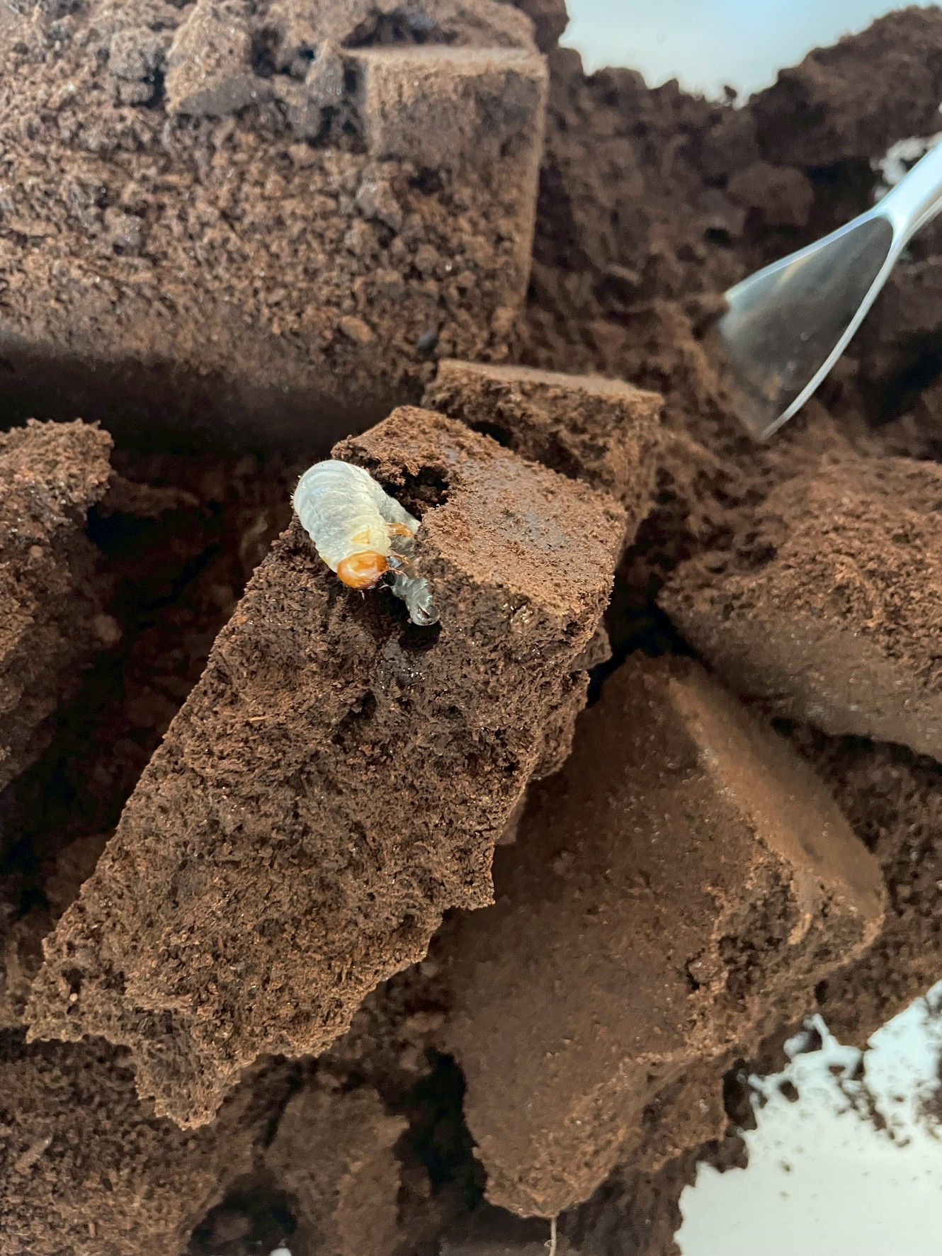 最終的には幼虫26頭・卵2個の計28頭を割り出し。