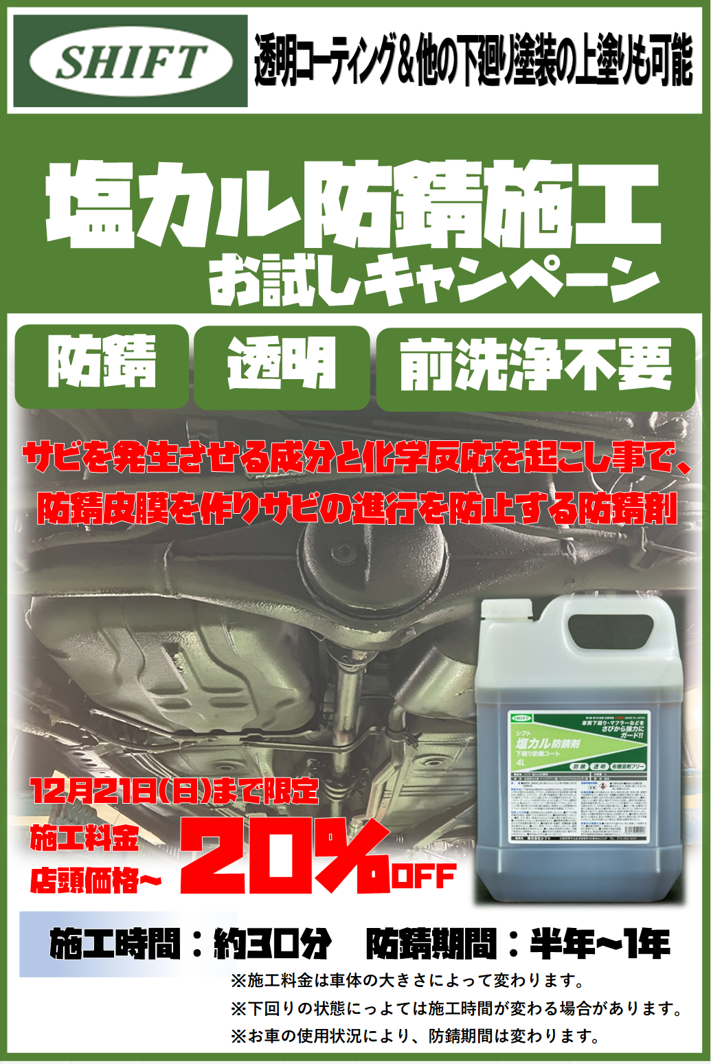 シフト塩カル防錆の割引セールをご紹介いたします。