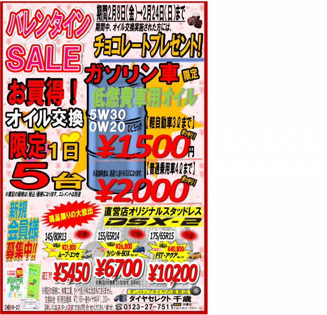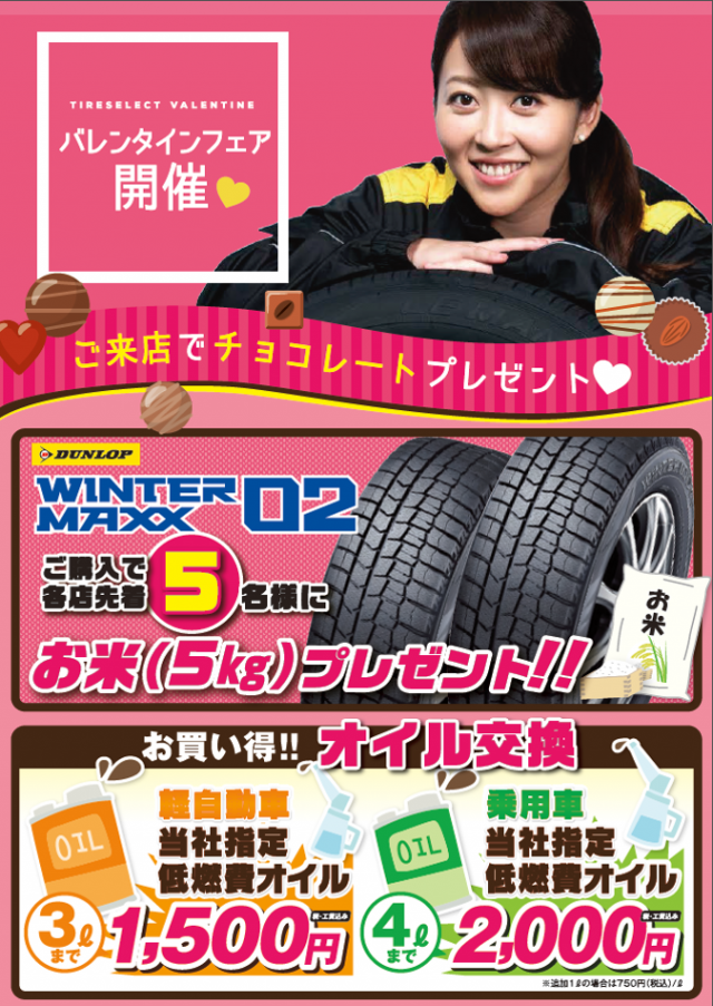 皆様、当店のホームページをご覧頂きありがとうございます!! バレンタインは終了いたしましたがタイヤセレクト千歳店では 、 24日まで開催中なん...