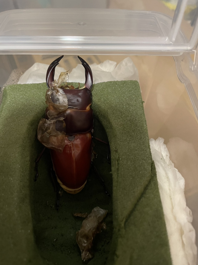 こんにちは、なかみちです。 本日はクワ日記⑪でご紹介していた、 幼虫期間2年の個体が無事羽化したのでご紹介させていただきます。 実は6月9日に羽化が始まったのですが、 当店ホームページの調子が悪く、 更新が本...