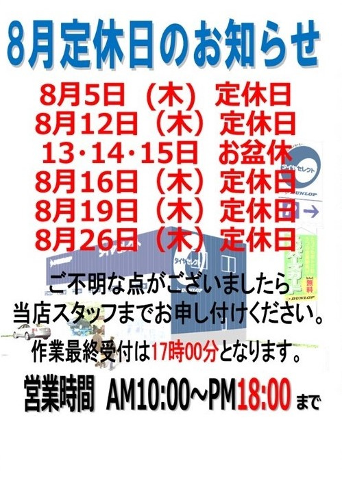 当店タイヤセレクト千歳店のホームページを ご覧頂き誠にありがとうございます。 今回は、タイヤセレクト千歳店の店長とスタッフが!! 変わりましたのでお知らせ致します♪ 8月1日より佐々木店長から生駒店長へ変わ...