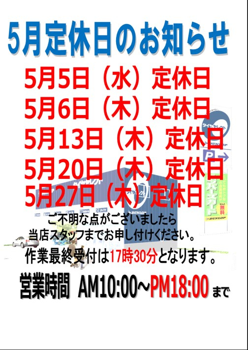 皆様、当店のホームページをご覧いただき誠にありがとうございます! 昔農です! さて早速ですが、2021年5月9日(日)までの購入限定で 対象のダンロッププレミアムタイヤ4本セットご購入の方に、 抽選...