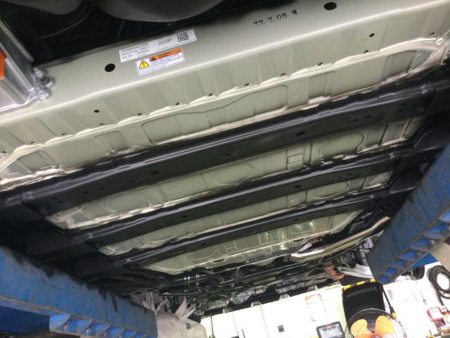 「タイヤセレクト釧路日記☆1749回目☆」~ 夏真っ盛り ~ 溶けた。完全に溶けた。 からの復活。 ( '-' )ノ)`-' )ペシィィィッッッ! 気分はターミネーターのT1000。 どうも、紺田です。 いやあ、昨日は暑かったですねえ~ 観測史上、最高値を記録したようで。 そんな暑い日もあっという間に 過ぎ去る釧路ですが、 冬に向けての作業も進めております。 今回もアンダーコート作業、 入庫いただきました。 今回のお車はプラグインハイブリッド車。 床下にある一体式の大きなカバーを外すと、 巨大なバッテリーが現れます。 バッテリー周辺の床面などは全面施工を しますが、バッテリー本体とケースは 排熱の関係もありますので、バッテリーを 支えるステーのみ施工させていただきました。 フェンダー内もカバーを外して施工し、 特にガソリン給油口からタンクに繋がる 配管は、錆びによるトラブルがあります ので、こちらも一緒に施工いたします。 マフラー防錆も同時施工いたしましたが、 画像が無い、、、 本格的な冬シーズンに入りますと、施工が 出来なくなりますので、お早目の施工を よろしくお願いいたします。 今回は施工依頼、誠にありがとうございました。 2022.08.01
