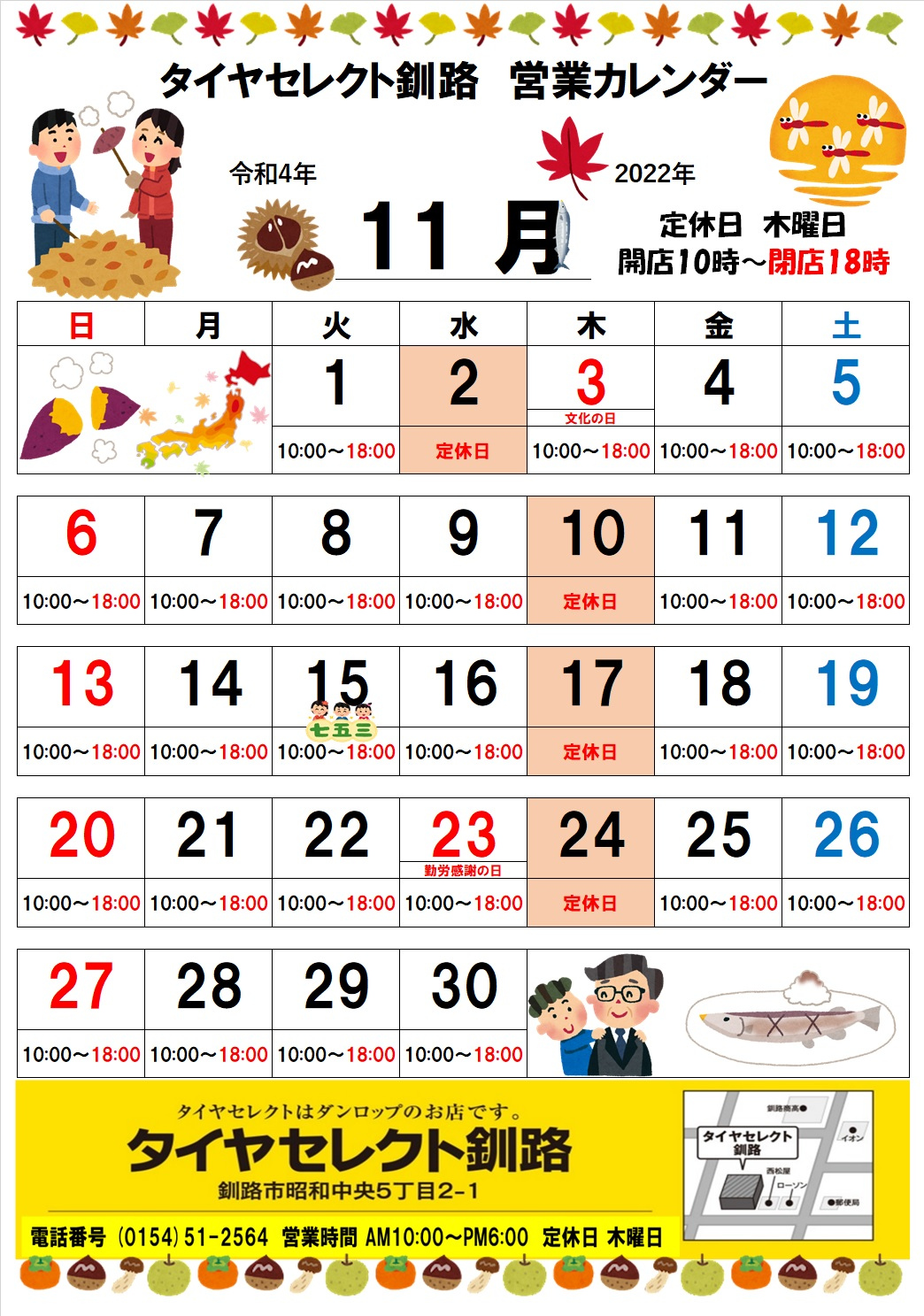 毎週木曜日は定休日