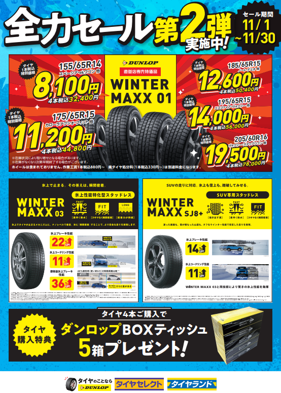 11月に入りさすがにタイヤ交換で