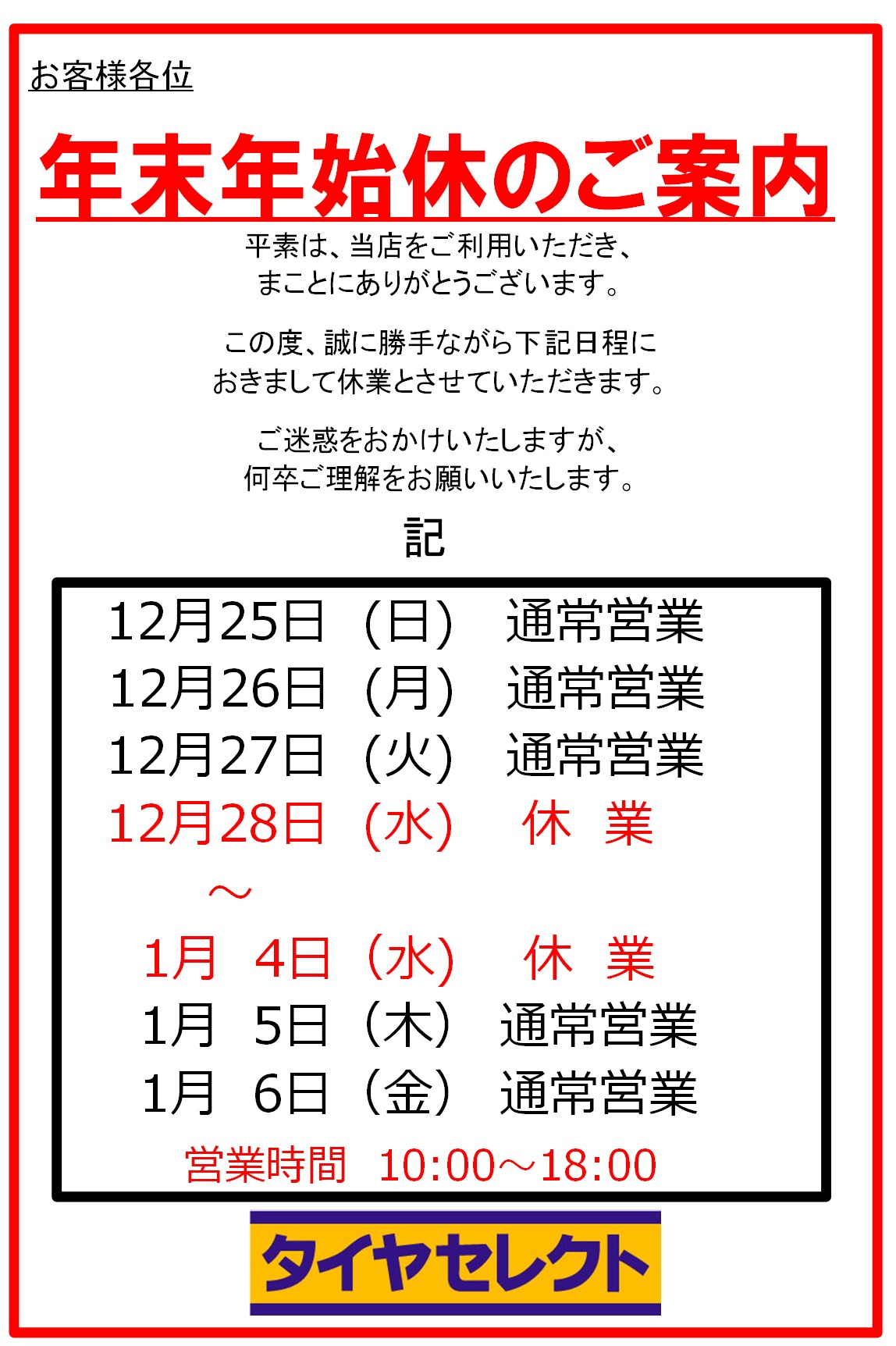 土・日・祝(タイヤ交換シーズンは火曜のみ)