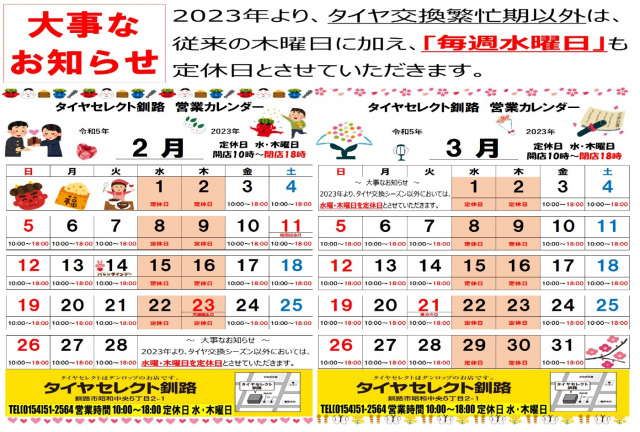 「タイヤセレクト釧路日記☆1892回目☆」~ 新しく。 ~