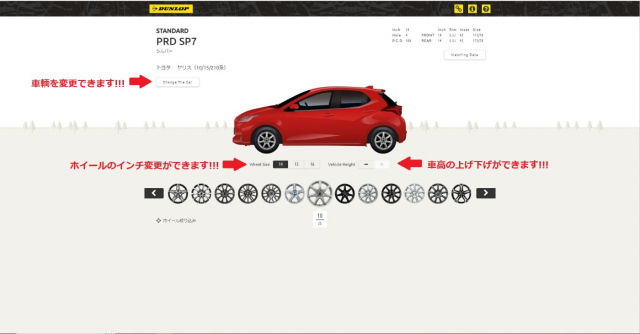 まずはダンロップタイヤ(タイヤセレクトもOK)の