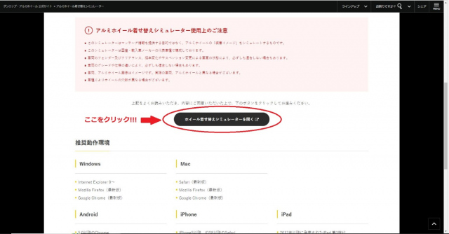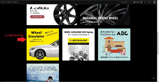 アルミホイール着せ替えシミュレーターのトップ画面に