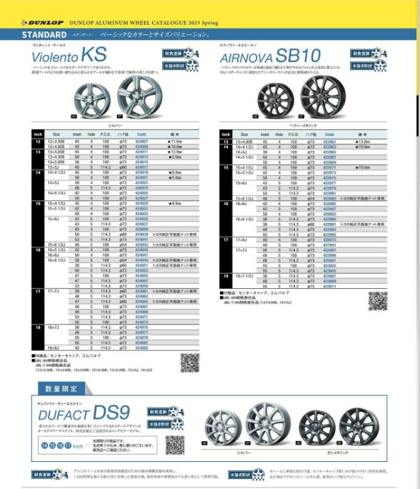 ※2023年ダンロップオリジナルアルミホイールカタログより引用