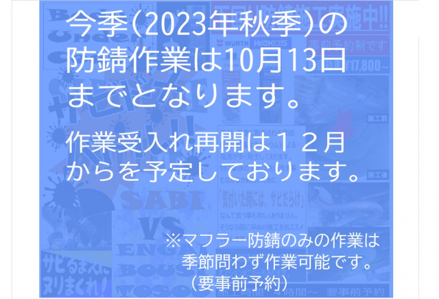 ※今季の防錆作業は、10月13日入庫