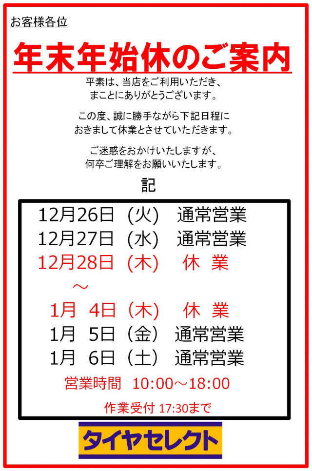 土・日・祝(タイヤ交換シーズンは火曜のみ)