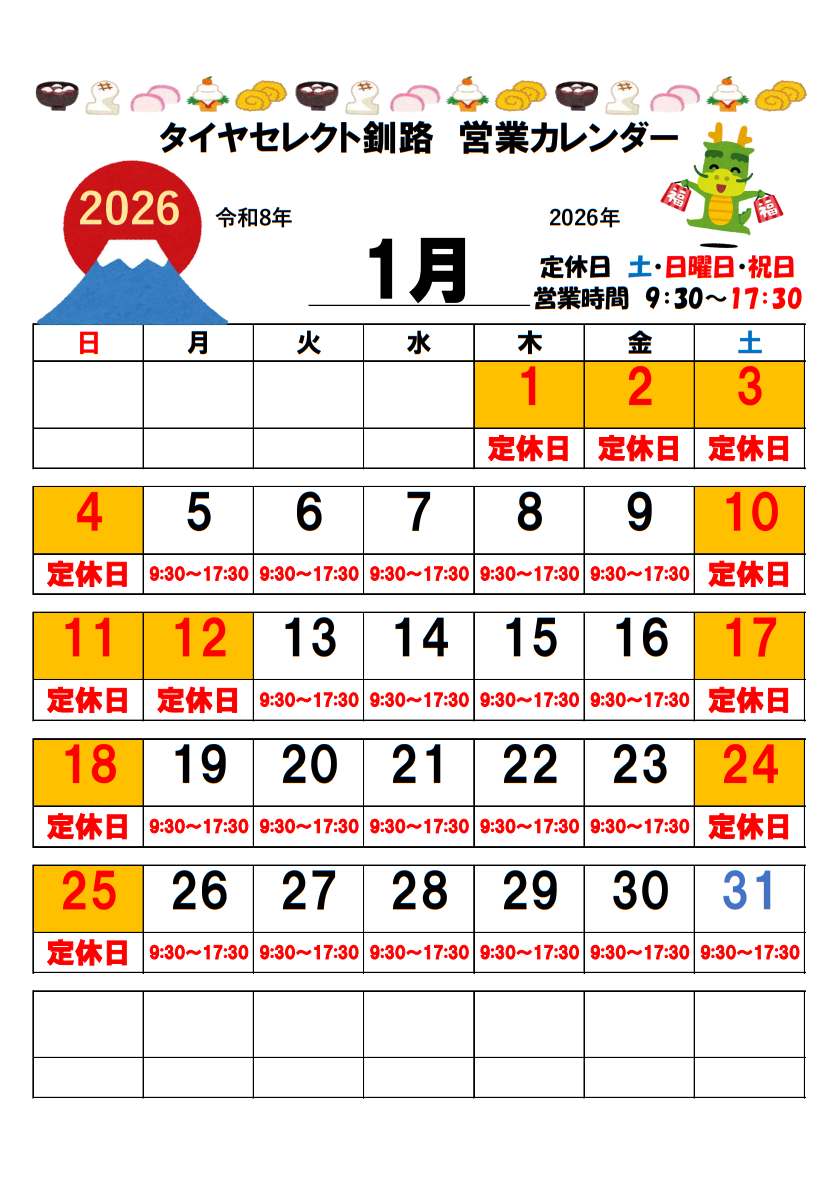 いつもタイヤセレクト釧路のホームページを