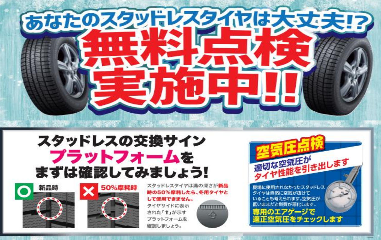 当店ではタイヤの無料点検を行っていますので、