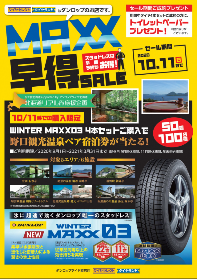 10/11までに今年の新商品”WINTER MAXX 03”を4本セットをご購入いただくと、、