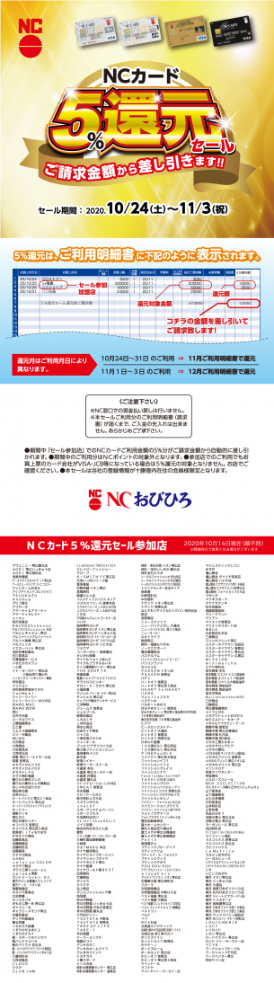 10/24より11/03まで日専連カード・NCカードのお支払いで、