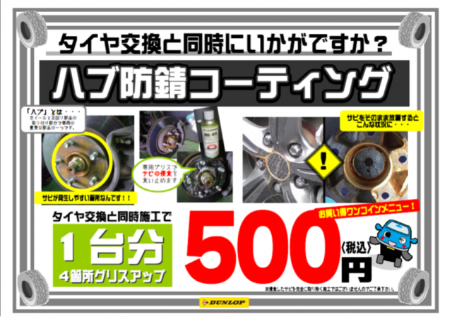 1台500円でできますので、タイヤ交換時にはぜひ!!
