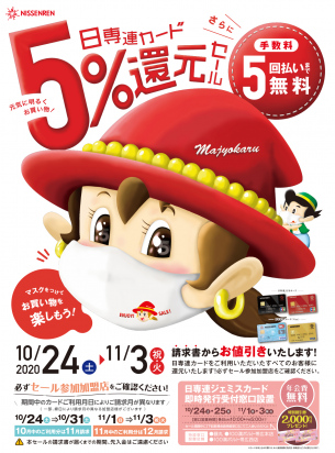 10/24より11/03まで日専連カード・NCカードのお支払いで、