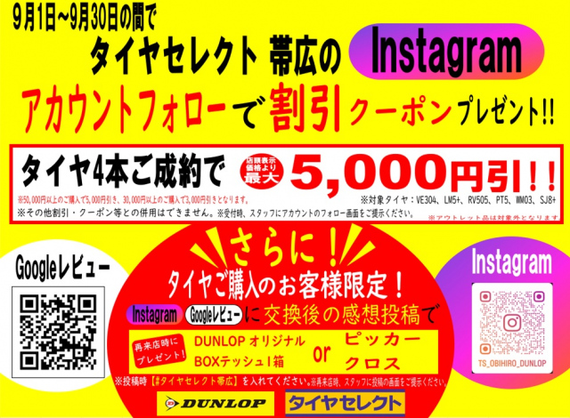 期間中にタイヤ点検を受け、タイヤ4本をご成約で…
