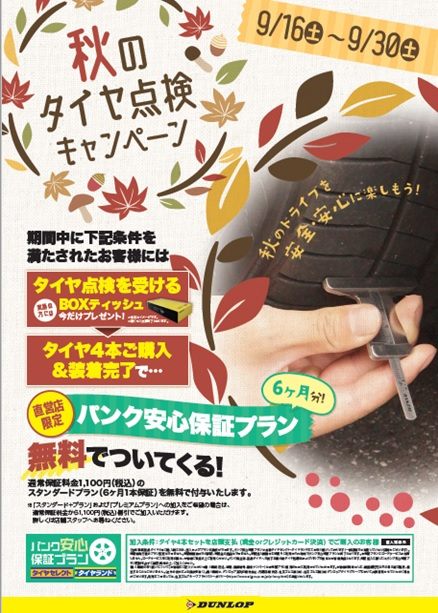タイヤ4本をご成約で、無料でパンク安心保証のスタンダードプランがついてくる!!