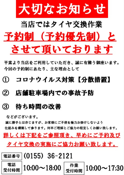 電話から作業のご予約をお願いしております。