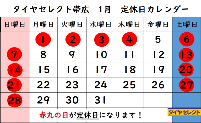 2023年12月と2024年1月の定休日カレンダーとなります!!