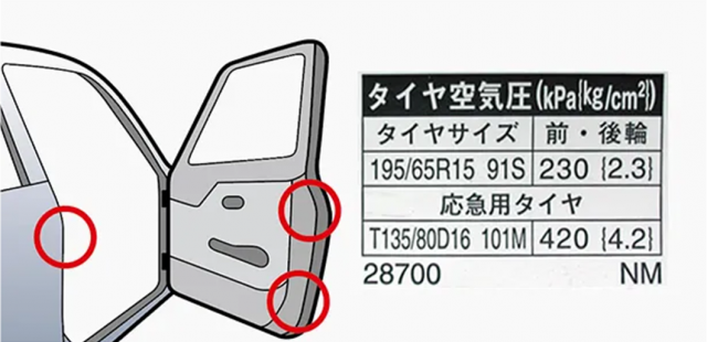 空気圧は国産車輛なら下記の画像のところに記入があります!!