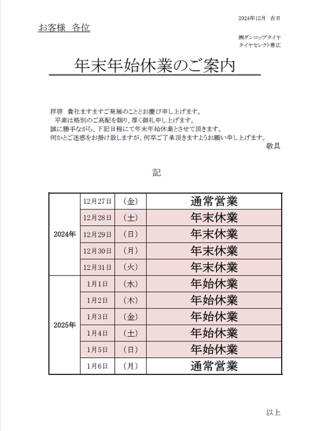 本年も格別のご愛顧を賜り、厚く御礼申し上げます