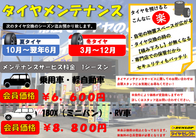 2025年より新規でタイヤメンテナンスをお申し込みされる方のご料金が変更となります。