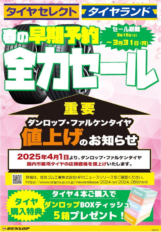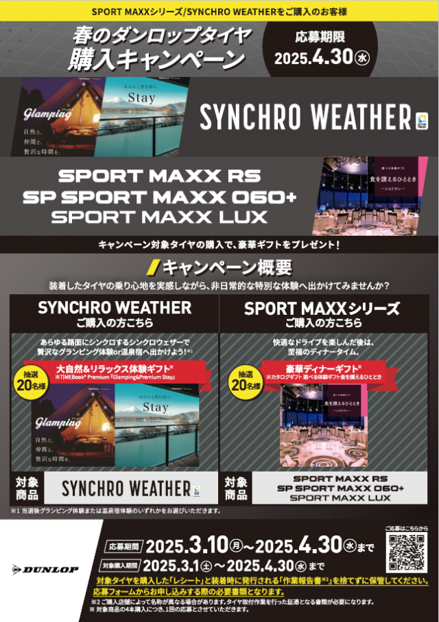 春のダンロップタイヤ 購入キャンペーン開催中!!