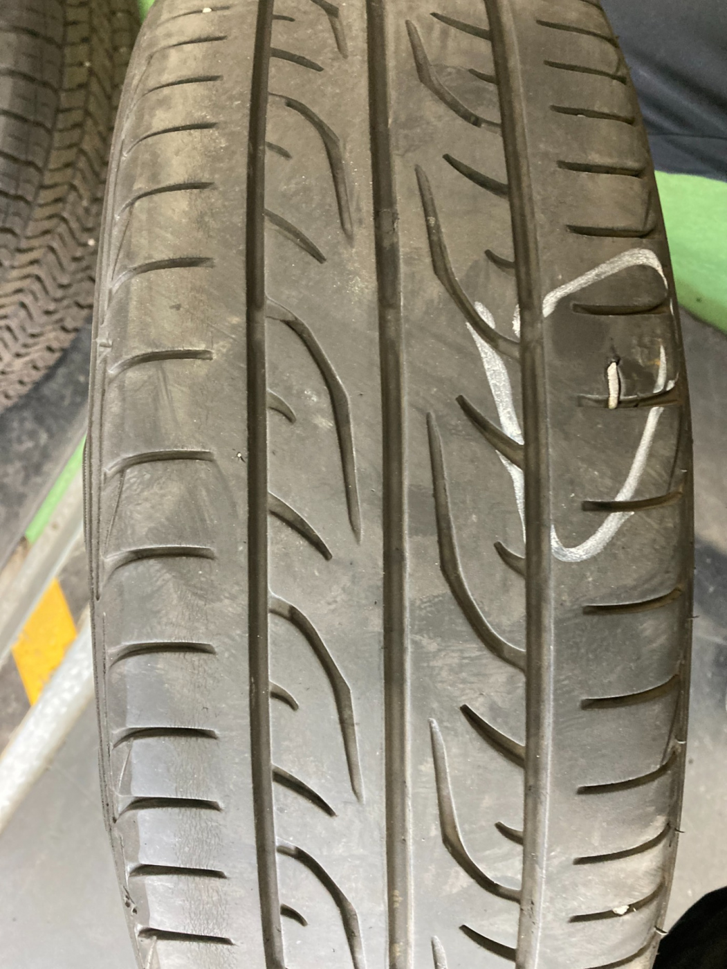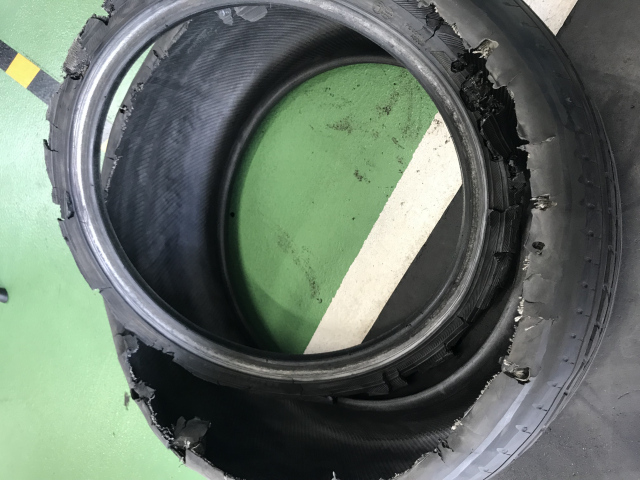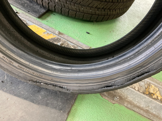 トレッド部(路面と接する面)に鉄の異物が刺さりエア漏れ。