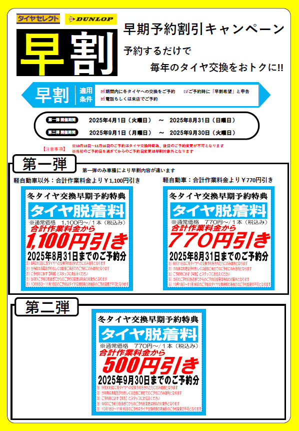 2025年より新規でタイヤメンテナンスをお申し込みされる方のご料金が変更となります。