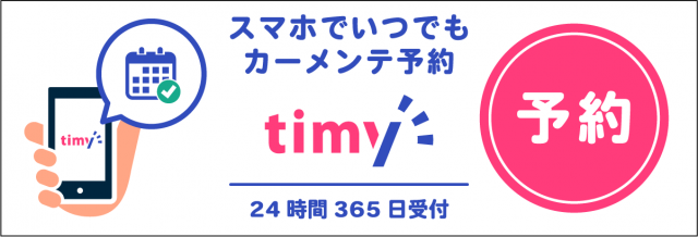 当店では【Timy】を導入しております。 こちらをご利用いただくと 24時間 365日いつでもご予約をお取りする事が可能です。 今までは基本お電話のみの受付となっておりましたが こちらをご利用いただくこ...