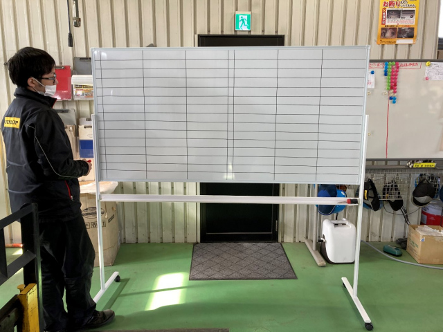 この春(4/1)からトラックとバスの予約制が苫小牧で行われるのでその予定を書くのに使うホワイトボードです!